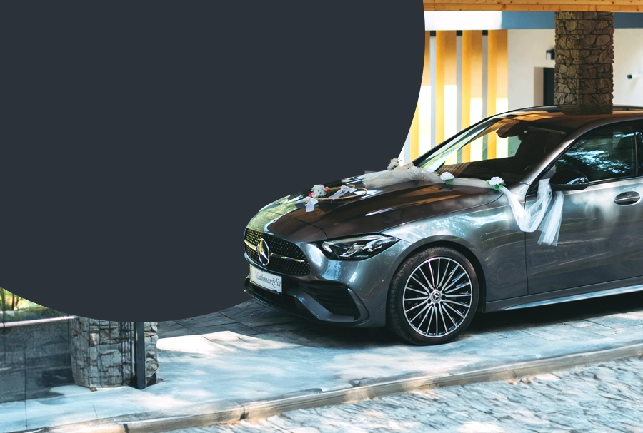 Naše vozidlo Mercedes C je vždy pripravené na váš svadobný deň. Profesionálna výzdoba a perfektný stav vozidla zaručujú nezabudnuteľný zážitok.